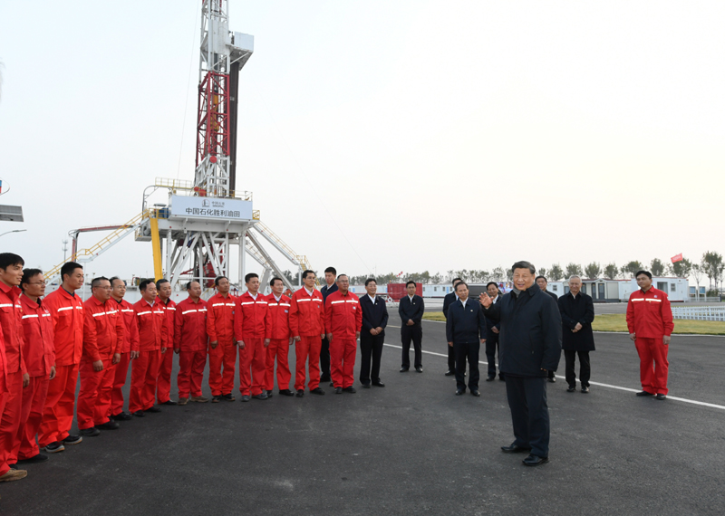 21日下午,習近平來到勝利油田勘探開發研究院,了解油田開發建設歷程和研究院總體情況,走進頁巖油實驗室、二氧化碳氣驅實驗室,聽取油田堅持自主創新、加快技術攻關應用、保障國家能源安全等情況介紹。習近平強調,解決油氣核心需求是我們面臨的重要任務。要加大勘探開發力度,夯實國內產量基礎,提高自我保障能力。要集中資源攻克關鍵核心技術,加快清潔高效開發利用,提升能源供給質量、利用效率和減碳水平。他指出,石油戰線始終是共和國改革發展的一面旗幟,要繼續舉好這面旗幟,在確保國家能源安全、保障經濟社會發展上再立新功、再創佳績。